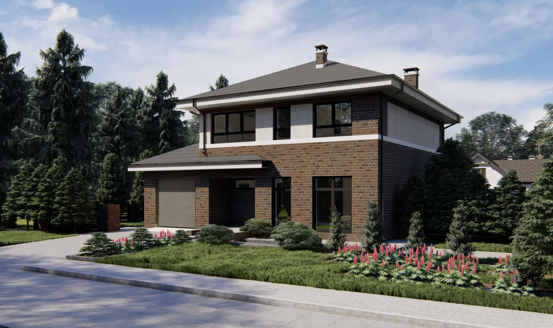 Двухэтажный дом с боковым гаражом и кабинетом на первом этаже