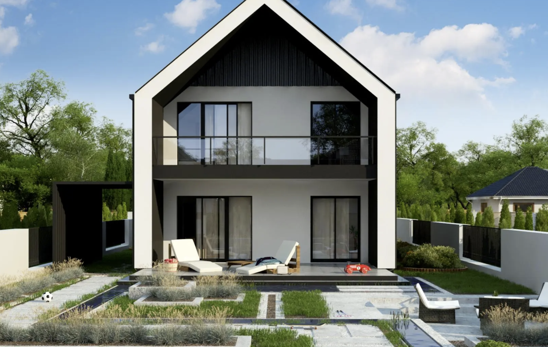 Мансардный дом с большой площадью остекления