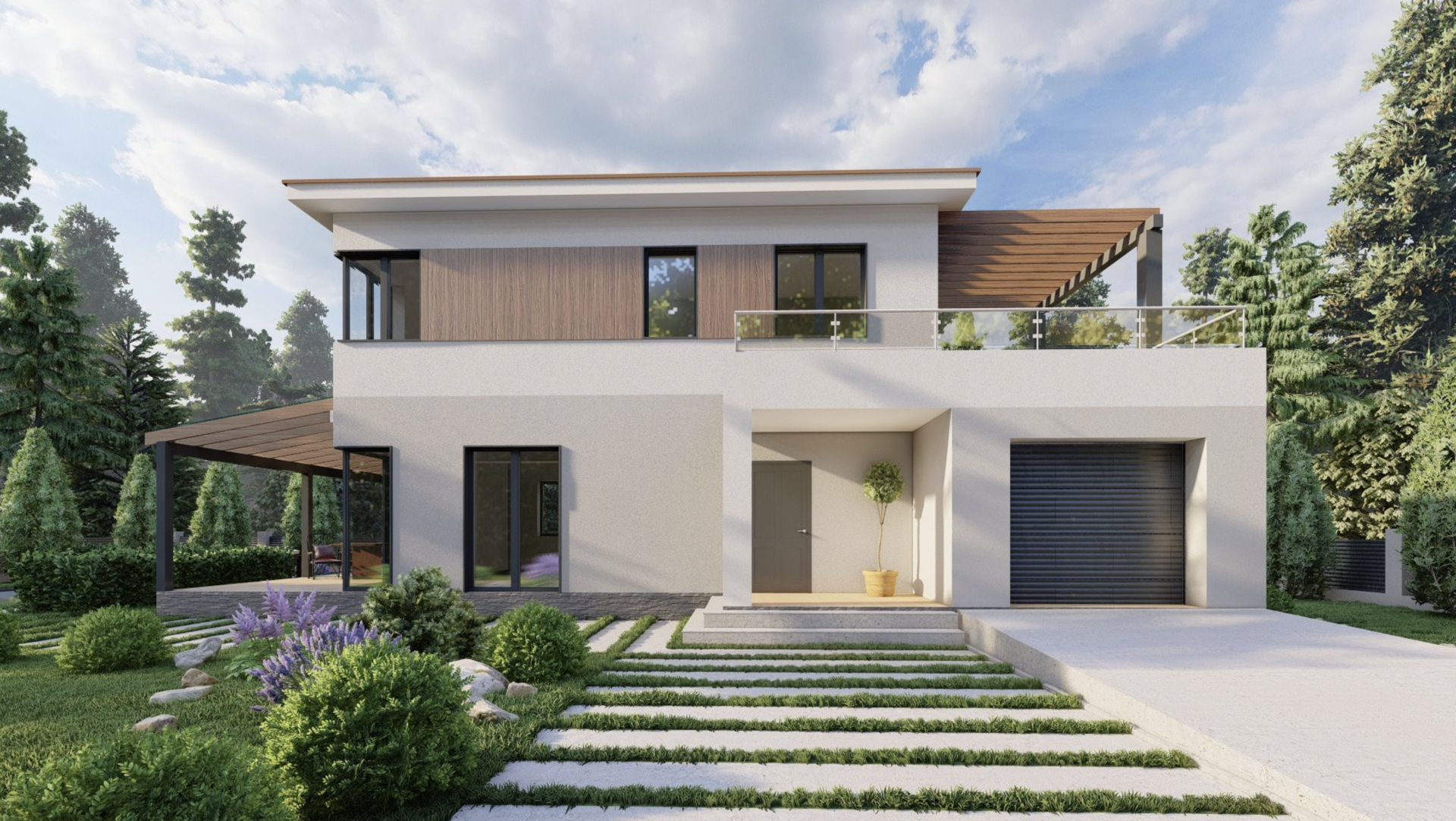 Одноэтажный дом на две машины